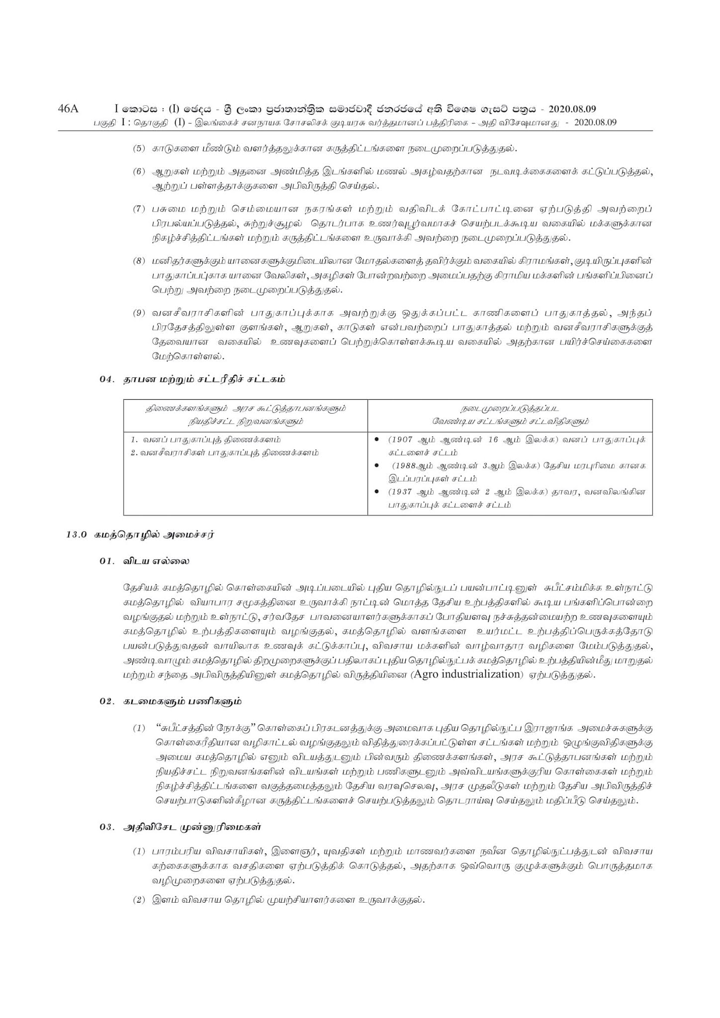 அதன்படி, இராஜாங்க அமைச்சு மற்றும் அமைச்சரவை அந்தஸ்த்துள்ள அமைச்சுக்களுக்கு கீழ் இயங்கும் திணைக்களங்கள், அரச கூட்டுத்தாபனங்கள் மற்றும் நியதிச் சட்ட நிறுவனங்கள் பின்வருமாறு,